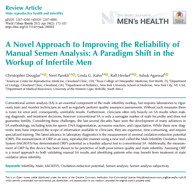 A Novel Approach to Improving the Reliability of Manual Semen Analysis: A Paradigm Shift in the Workup of Infertile Men”.