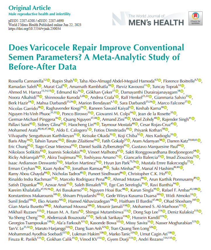 The true benefit of varicocele repair on reproductive hormone levels, pregnancy and live birth rates is also controversial. However, the main problem here is that the effect of varicocele repair on semen parameters is still not fully understood. Therefore, this metaanalysis aimed to examine the effect of varicocele repair on conventional semen parameters. This unique research project lasted for about 24 months and could be easily called the most comprehensive meta-analysis to date in the world.