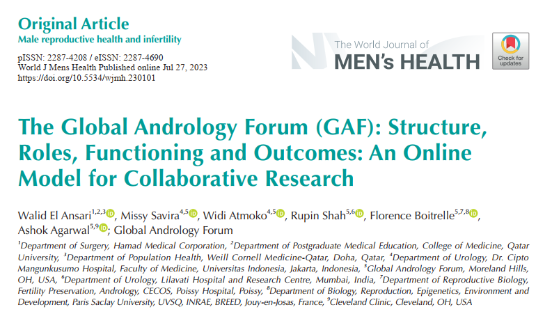 The Global Andrology Forum (GAF) is an innovative pioneering initiative of international collaborative online andrology research and training organization. The concept of GAF was initially formulated in 2020 by Dr. Ashok Agarwal, as a response to the limitations and restrictions extended by the COVID-19 pandemic. In an unexpectedly very short period since its introduction to the world, the GAF has clearly inspired the reproductive professionals around the world with its vision and mission, sturdily constructed its