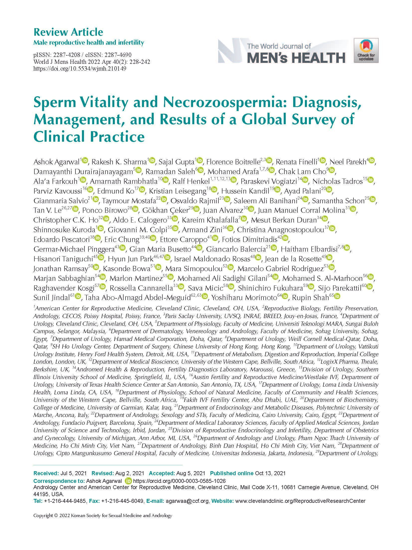 Authors: Ashok Agarwal et al. World J Mens Health 2022 Apr 40(2): 228-242