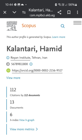 Hamid Kalantari graduated with a Master's degree in Cell and Molecular Biology from the University of Tehran in Iran. He is a researcher in the Departmemt of Andrology at the Royan Institute since 2011. His research primarily focuses on the genetic aspects of infertility. Hamid has 13 publications,112 citations, and an h-index of 6 in Scopus (Oct 2024). He serves as a Research Assistant in the Global Andrology Forum.