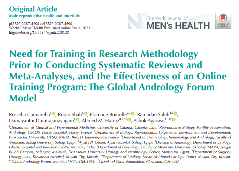 The Global Andrology Forum (GAF) is an international online scientific group established in 2021, is committed to conducting the highest quality research related to male reproductive and sexual health including SRMAs. While conducting SRMAs, the GAF realized that to avoid mistakes during the study, it is necessary to train the researchers rigorously. Hence, GAF developed a comprehensive online training program that focuses on all the steps of SRMA including the search of different databases, data acquisition and analysis and quality check of included studies.
